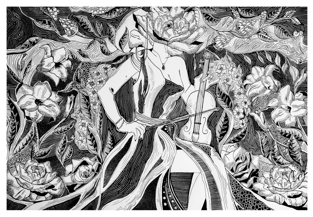 Hi, my name is Nicole and I’m in my final year studying Single Honours Illustration at the University of Worcester. I specialise in black and white ink illustration and printmaking, with a strong focus on pattern, texture, and light and dark space. Much of my inspiration comes from the natural world, and I enjoy creating a sense of flow within my work, guiding the viewer’s eye around the composition.